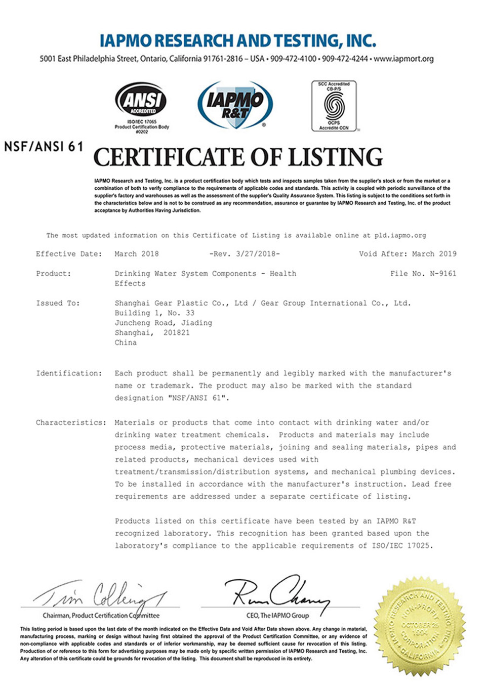 Our products have passed: US NSF, UPC, European EN817, EN200, EU CE, ROHS, PAHS, Germany W270, DVGW/KTW, UK WRAS, France ACS, NF, Australia Water Mark, China GB18145 and other international testing certification.